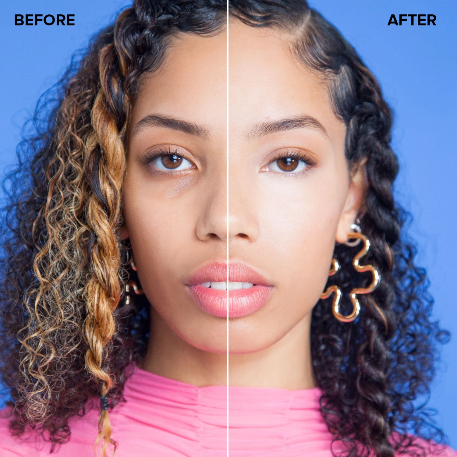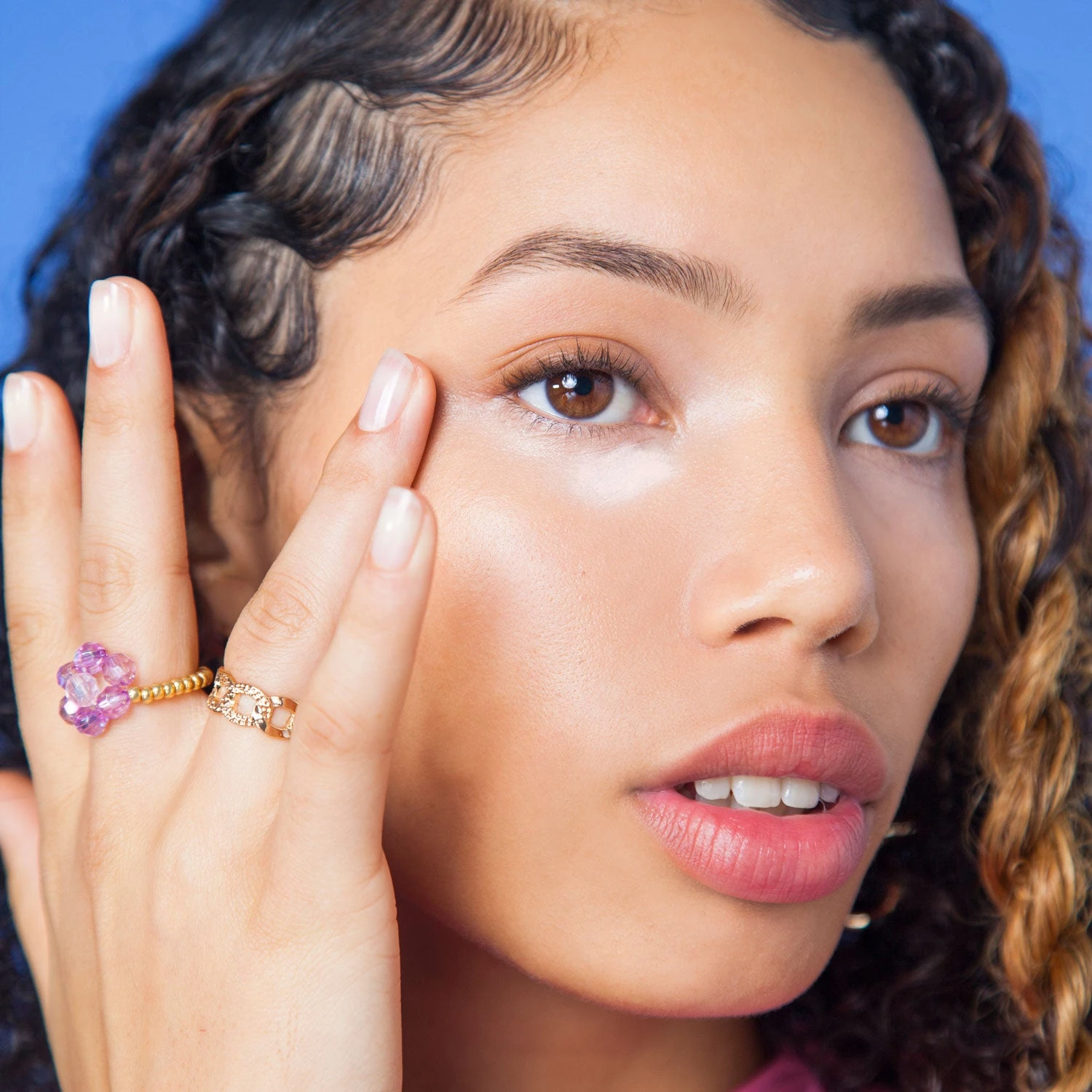 Pro tips: Use the back of the hand as a palette to warm up and sheer out the product and from there apply to undereye area using light layers.